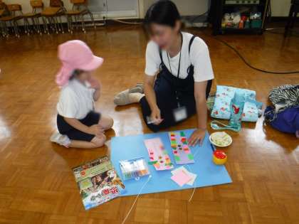 遊戯室降園(6月) 公開日 2024/06/28 更新日 2024/06/28 保育の様子 今日は月末なので、遊戯室降園をしました。 6月の遊びの様子を写真で見たり、連絡を聞いたり…。 その後、七夕の日が近づいてきているので、おうちの人と一緒に笹飾りをつくったり短冊にねがいごとをかいたりしました。 来週は七夕のつどいがあり、たくさんつくった笹飾りを笹につけて持ち帰ります。楽しみですね(^^) いいね(0)