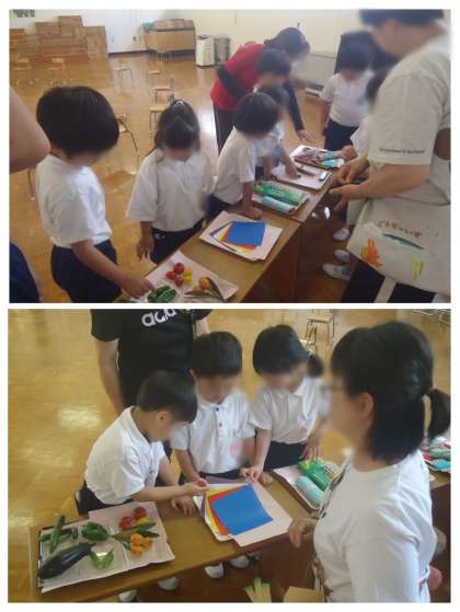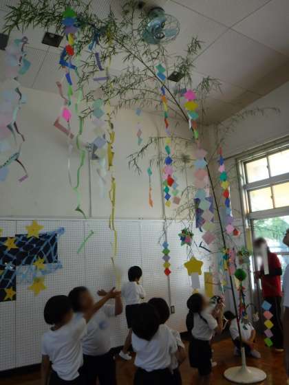 七夕のお話を聞いたり、お供え物を見たり、「七夕バスケット」をしたりして、楽しい時間を過ごしました。