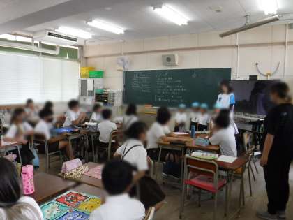プール交流をしてくれた5年生のお兄さん・お姉さんに、“ありがとう”の気持ちを込めて絵をかき、届けに行きました。