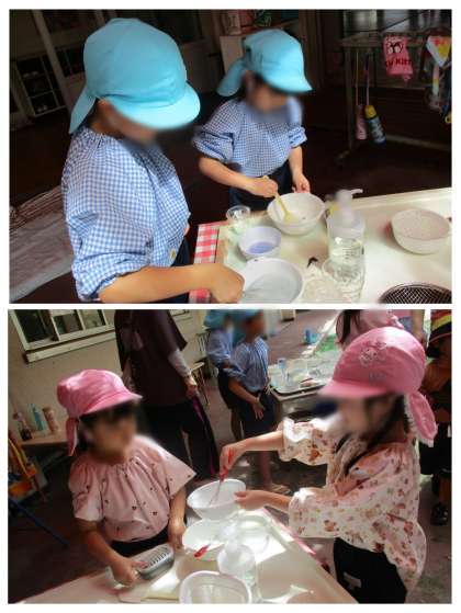 色水遊び・泡遊び・スーパーボールすくい・シャボン玉を存分に楽しみました(o^−^o)