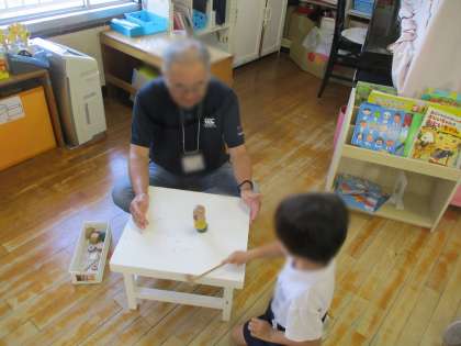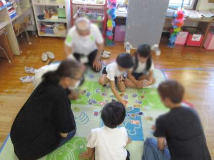 保育室では、普段の遊びやカルタ、だるまおとし、すごろくなど、様々な遊びを一緒に楽しみました。