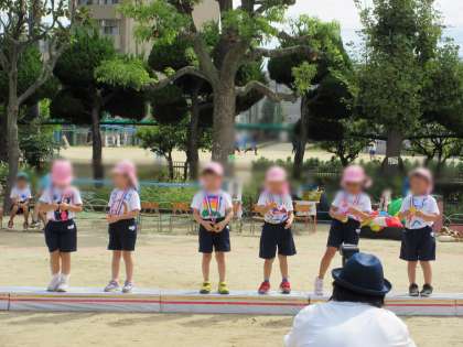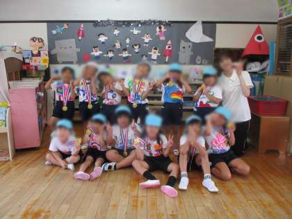 運動会が終わって保育室に帰ると、「楽しかった〜!」「頑張ったよね〜!!」と友達と話をする姿がありました。
