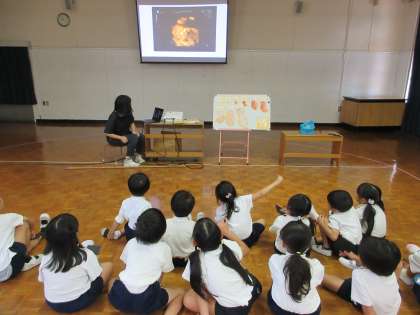 にじ組、もも組一緒にいのちについてのお話を聞きました。