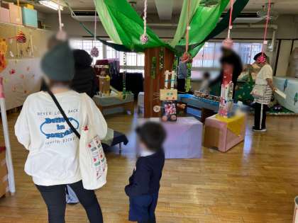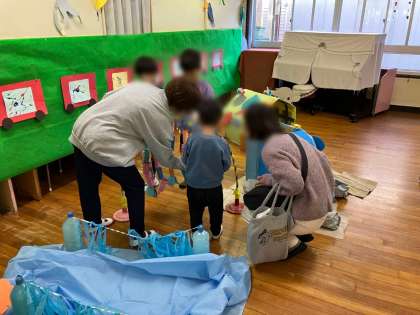 ふれあい製作の後は、おうちの人と一緒に作品を見ました。