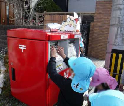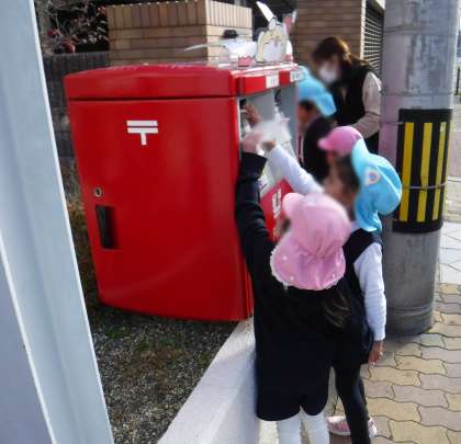 年賀状を投函したよ(12月23日) 公開日 2024/12/25 更新日 2024/12/25 保育の様子 お正月に年賀状が家に届くことを楽しみにしながら、一人ひとり年賀状に絵をかきました。 にじぐみ・ももぐみみんなで幼稚園の前にあるポストに投函! 「届きますように…☆」と期待をもっています(^^) 1月1日、お家に届くことを楽しみにしていてくださいね!! いいね(0)