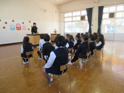 始業式では、園長先生のお話を聞いたり、鏡餅についてのお話を聞いたりしました。