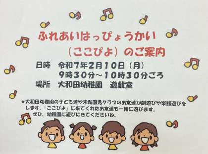 2月10日月曜日に未就園児対象にふれあい発表会を行います。ぜひ、幼稚園に遊びに来てくださいね。