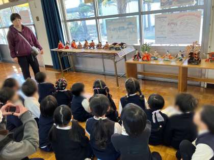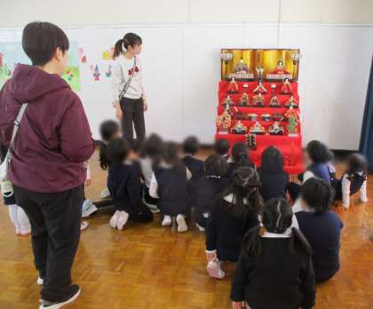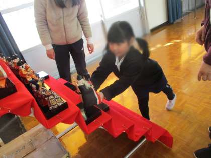 一つ一つの人形や飾りに興味津々の子どもたち。