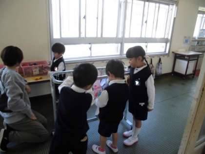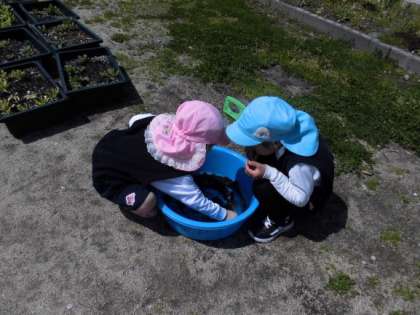にじ組5歳児が4歳児もも組の手伝いに行っています。「どうしたらいいか分からなかったけど、ここだよって教えてあげられた!」と嬉しそうににじ組の子どもたちは話していました。園庭ではにじ組もも組の子どもたちが一緒にダンゴムシを探したり、春の草花を使って遊んだり、自然に触れて遊ぶ姿が見られています。これからも異年齢で遊ぶ機会もたくさんつくっていきたいと思っています。
