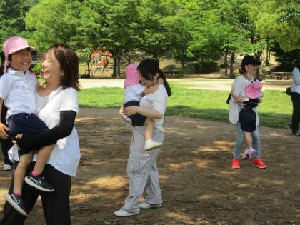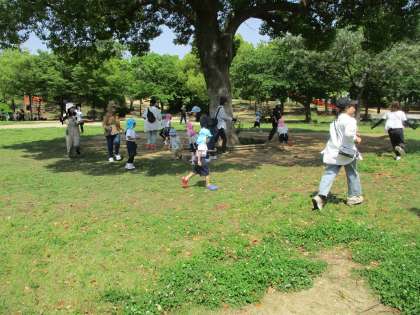 親子での園外保育、暑いくらいの汗ばむ陽気でした。