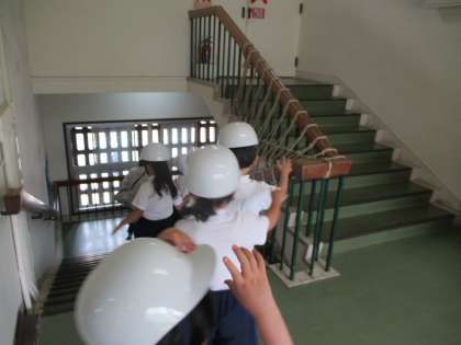 こぐまくらぶの子どもたちも一緒に、3階家庭科室前まで無事避難できました。
