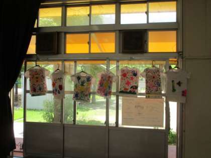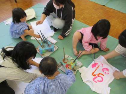 今日はふれあいTシャツ製作をしました。保護者の方と子どもたちと一緒にTシャツに絵をかきました。お家の方と一緒に色を選んだり、かきたいものを考えたり、一緒に絵をかいたりして、子どもたちのとても嬉しそうな姿がたくさん見られました。世界にひとつだけの素敵なTシャツが完成しました。ご参加いただいた保護者の皆様ありがとうございました。これからも楽しい表現活動を保育に取り入れていきたいと思っています。