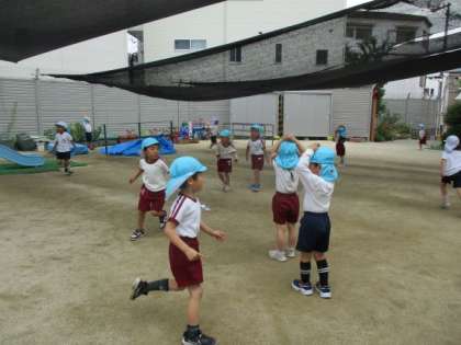 今日は5歳児にじ組が姫島幼稚園に遊びに行きました。姫島幼稚園の5歳児はそら組で「おんなじ水色の帽子や」と初めて会う友達にすぐ親しみを感じていました。歌を歌ったり、ふれあい遊びをしたり、しっぽ取りをしたり、姫島幼稚園の園庭で遊んだり、お弁当を食べたり子どもたちはすぐに仲良しになっていました。「次は大和田幼稚園に遊びに来てもらおう」とにじ組の子どもたちは今からとても楽しみにしています。いろいろな交流を通して、互いに刺激を受けたり、人と関わる楽しさや嬉しさを感じたりできるようにこれからも考えていきたいと思っています。姫島幼稚園のみんなありがとう!!