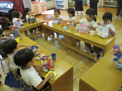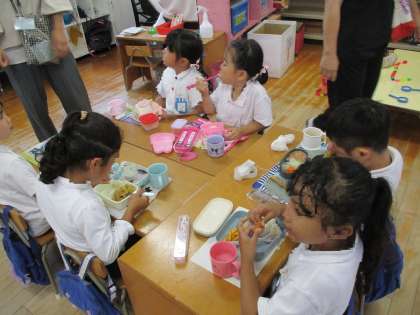 準備をし、「おべんとうのうた」を歌って食べ始めるところから始まりました。