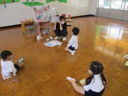 園にあるトイレの種類を確認し、和式トイレの使い方を模型を使って実演しました。公園などには和式トイレがある所も多いので、みんなで使えるようにしていきたいと思います。