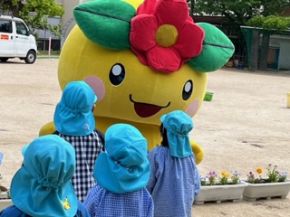 花を植えたら、にーよんが来てくれたので、子どもたちは大喜びでした。子どもたちだけでなく、保護者のみなさんもにーよんとの記念撮影を楽しみ、有意義な時間を過ごせました。