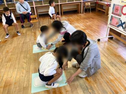 今日は体重測定のあと、養護教諭の先生がトイレのスリッパの並べ方とトイレの使い方を教えてくれました。話を聞いたあとトイレに行くと、早速、スリッパをきちんと並べる姿がありました。これからも継続して指導を行っていきます。