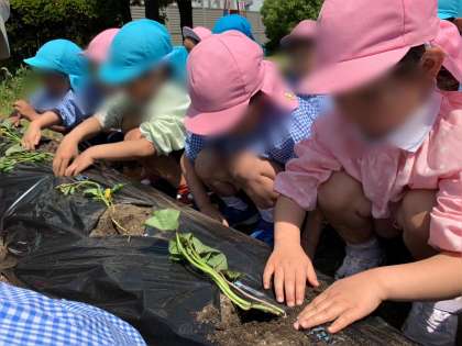 「土の中で大きくなるんだね」「大きくなってほしいなぁ…」と生長を楽しみにしています。