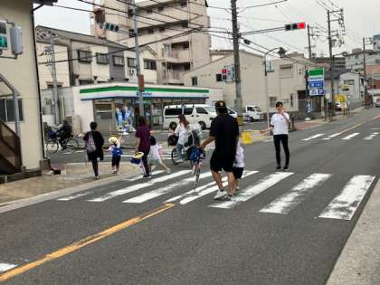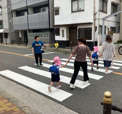 今日は降園指導を行いました。先生たちが幼稚園周辺の横断歩道に立ち、安全に帰っているか確認。。子どもたちも保護者も意識しながら信号を渡ったり、一緒に手をつないで歩いたりしていました。降園指導のあとは先生たちが集まって反省や気づいたことを話し合い、次回にいかすことにしました。今後も登降園を安全に過ごしていきましょう。