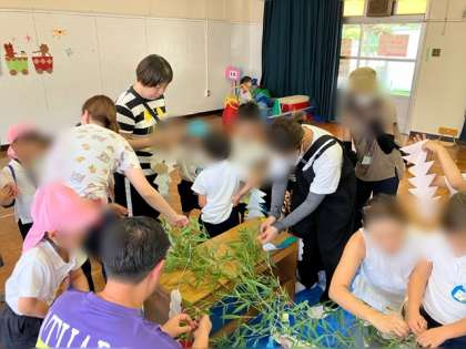 親子で笹飾り 公開日 2023/07/06 更新日 2023/07/06 保育の様子 明日は七夕、、今日は親子で作った笹飾りをみんなでつけました。親子でどこにつけようか考えながら楽しみながらつけていました。 いいね(0)