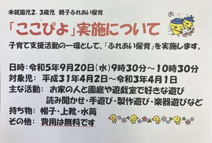 未就園児活動「ここぴよ」の案内です。ぜひ、参加してください。