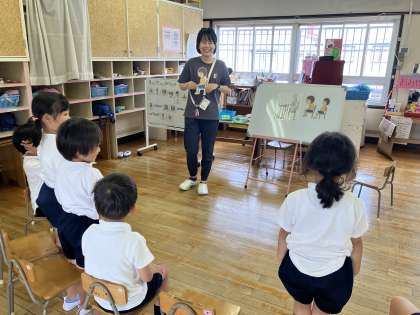 保健指導では養護教諭の先生から、姿勢や怪我についてを教えてもらいました。にじぐみがお祭りを開催した「にじぐみまつり」では、保護者の方にも参加していただき一緒に楽しみました。また、挨拶隊も始まり、毎朝、子どもたちの元気いっぱいの挨拶で気持ちのよい1日が始まりました。まだまだ、暑い日が続きますが、これからもいっぱい遊んで元気に過ごしましょうね。