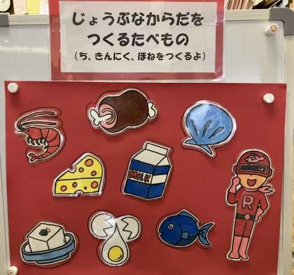 今月の保健指導は食育についてです。三食バランスよく食べることの大切さを養護教諭からクイズを交えて話をしました。子どもたちは真剣に話を聞き、クイズにも興味深々でした。これからもバランスよくいっぱい食べて心も体も大きくなりましょう。