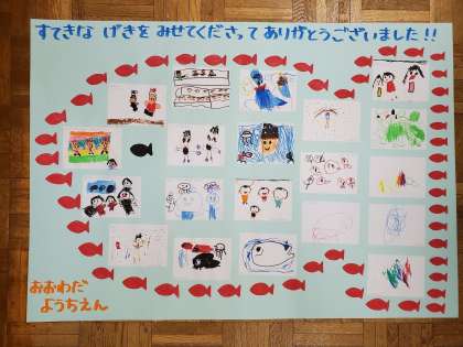 大和田小学校の学習発表会を見に行きました 公開日 2023/11/10 更新日 2023/11/10 保育の様子 大和田小学校の学習発表会を見に行かせていただきました。 1年生の音楽劇「スイミー」を見ました。集中して見ていた子どもたち。見終わって幼稚園に戻ると、「すごかった!」「かっこよかった」「めっちゃすごかった!!」と大興奮でした。 見せていただいたお礼に絵をかいて届けました。明日、素敵な学習発表会になりますように! いいね(0)