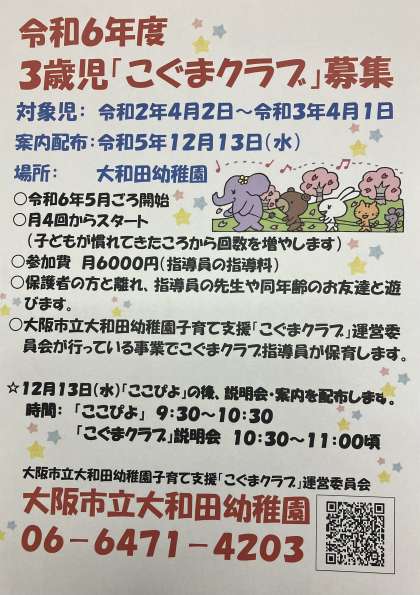 こぐまクラブの募集を行います。ぜひ、いらしてくださいね。