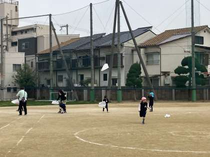 今、隣の大和田小学校て凧上げを楽しんでいます。