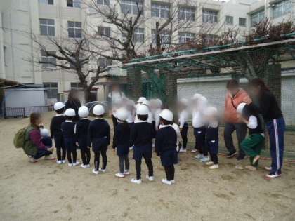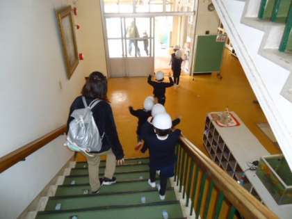 放送を聞くと素早く机の下に入り、ヘルメットをかぶって速やかに園庭に避難することができました。