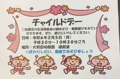 未就園児活動を行っています。大和田幼稚園に遊びに来てください。 2月5日(月)9時30分からです。