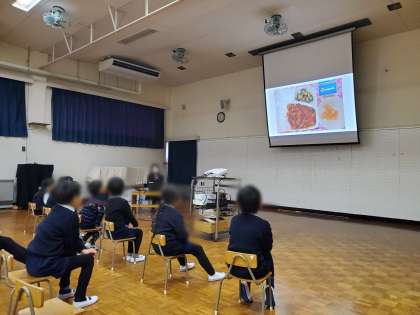 給食についてのお話を聞きました 公開日 2024/02/28 更新日 2024/02/28 保育の様子 大和田小学校の栄養教諭の先生が来てくださり、給食についてのお話を聞きました。 給食のメニューや給食をつくっているところなどを見せていただき、子どもたちは興味をもってお話を聞いていました。中でも、「ラッキーにんじん」がとても印象に残ったようでした。 「給食楽しみー!」「学校に行くのが楽しみになってきた!!」と、就学への期待も高まりました(*^^*) いいね(0)