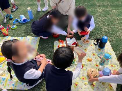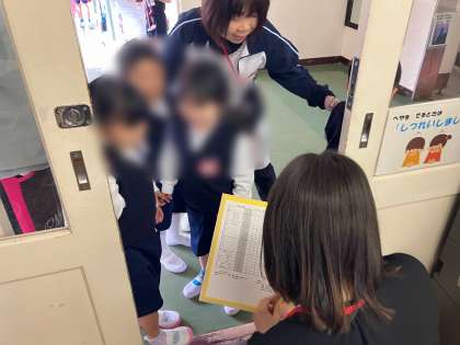 昨日、入園式を迎えたもも組のお友達は、自分の靴箱を探したり保育室に入ったり、ワクワクがいっぱいです。朝の身支度はにじ組さんにお手伝いをしてもらって、早速一緒に遊ぶ姿が見られました。おやすみ調べもして、養護教諭の先生にもっていき、先生の名前を聞いたり職員室を知ったりしました。これからもたくさんのことを知っていってね。