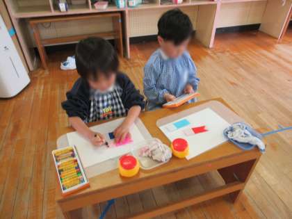 こいのぼりが泳いでる! 公開日 2024/04/18 更新日 2024/04/18 保育の様子 にじ組は、今日は屋上でこいのぼりを見ながらお弁当を食べました。 「こいのぼりが泳いでる!」「あ、今は休憩中かな」と、こいのぼりの様子を見つつ…「屋上で食べるの初めて!嬉しい!!」と楽しんでいました(*^^*) また、折り紙でこいのぼりをつくってみました。「園庭のこいのぼりと同じ〜♪」と嬉しそうな子どもたちでした(^^) いいね(0)