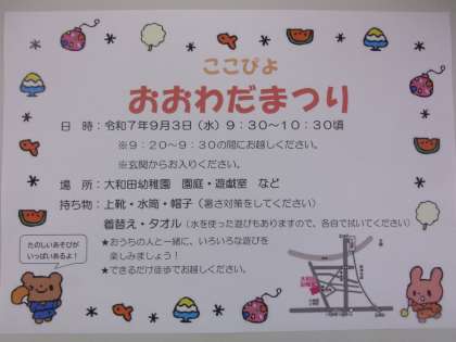 未就園児の保護者の方へのお知らせ 公開日 2025/08/20 更新日 2025/08/20 幼稚園行事 幼稚園はもうすぐ夏休みが終わります。 9月3日開催の『おおわだまつり』と『幼稚園見学』についてお知らせいたします。 内容等は、添付の画像をご確認ください。 ぜひご参加ください。お待ちしております! いいね(0)