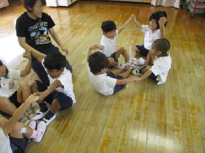 みんなで力を合わせてお花を作ったよ 公開日 2025/09/08 更新日 2025/09/08 保育の様子 友達と手を繋いでお花を表現しました。「できた〜」「お花になった」と喜んでいます。 しっかり手を繋いで小さくなったりと体を広げたりとみんなで一つのお花を作りました。 いいね(0)