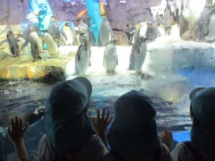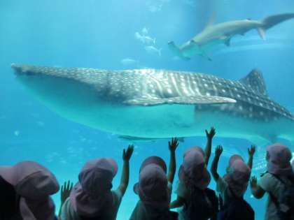 海遊館にはいろいろな生き物がいて、子どもたちは大きな水槽のジンベイザメや様々な魚、かわいいペンギンにや色とりどりの魚たちを夢中で見ていました。安全に気を付けて道を歩いたり、電車の乗り降りの約束やマナーを守ったりしながら、みんな元気に帰ってくることができました。これからも園外でのいろいろな経験もできるように、保育を進めていきたいと思っています。今日はとっても楽しかったね!