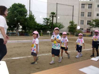 4日予定だった運動会を5日(日)に実施しました。準備をした後に大雨が降ってしまい、園庭が水たまりいっぱいになってしまいました。その後、雨が上がり、教職員、保護者の方々、昨年度の教職員の方々が力を合わせて、園庭を整備して運動会を実施することができました。子どもたちは力いっぱい体を動かす遊びを楽しみ、たくさんのお客様に見てもらいとても嬉しそうでした。本当に素敵なみんなの心に残る運動会になったのではと思っています。ご協力いただいたすべての方に感謝の気持ちでいっぱいです。ありがとうございました!