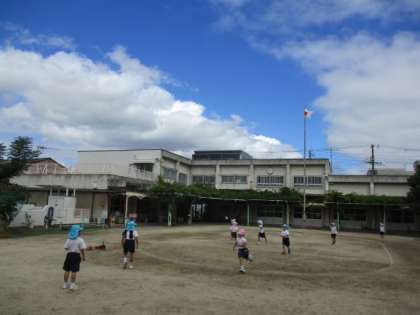 5歳児にじ組の子どもたちがが氷鬼ごっこをしていると、4歳児もも組の子どもたちが「いーれーて!」とやってきました。「いいよー!」とにじ組の子どもたち。にじ組が中心となって鬼決めがはじまりました。「タッチされたら動いたらあかんねんで」ルールを知らせる姿もありました。子どもたちが遊びを伝え合い、自分たちで遊びを進める楽しさや充実感を感じている様子に、子どもたちの成長を感じます。安全に気をつけながら、子どもたちが遊びを進めていけるよう、見守り橋渡しをしていきたいと思っています。