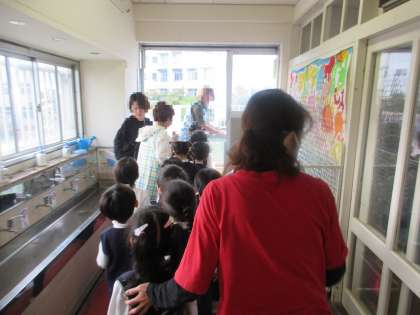 集まってから園長先生の話も真剣に聞いています。