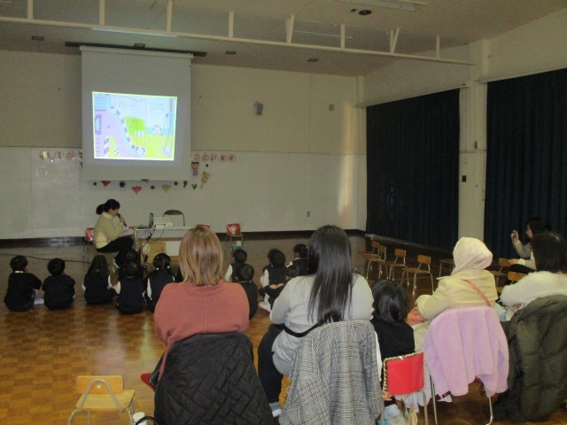 園長先生からお祝いのお話のスライドショーがありました。