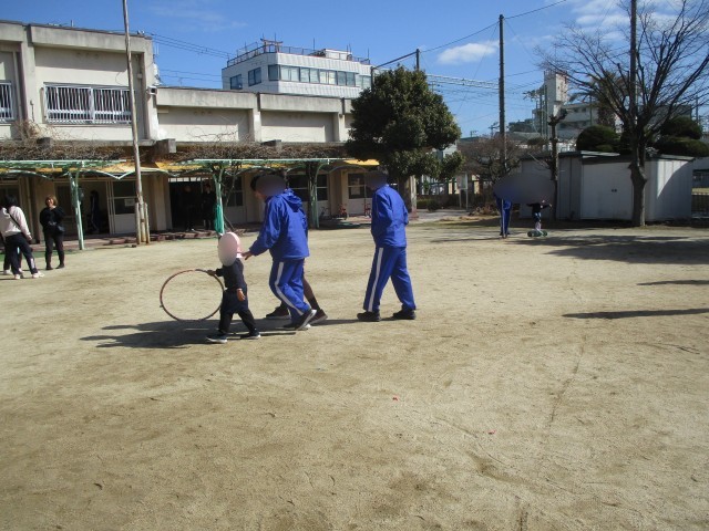 今年度最後の交流となりました。室内遊びや外遊びを楽しみました。