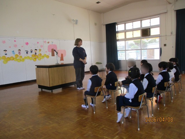 子どもたちはちょっぴり緊張した様子で園長先生のお話を聞いています。