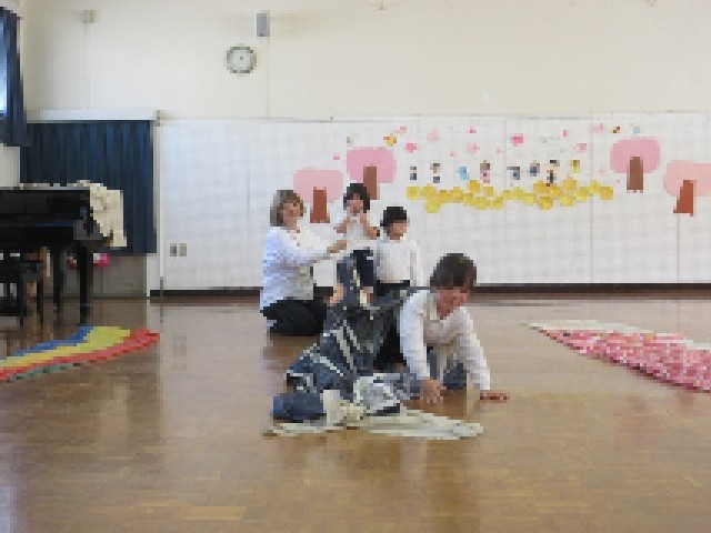こいのぼりに触れたり、こいのぼりのトンネルをくぐったりこいのぼりに親しみを感じて遊ぶ姿がありました。