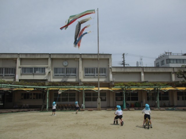 子どもたちはこいのぼりを見ると「わぁ久しぶりやな!!」と喜んでいました。