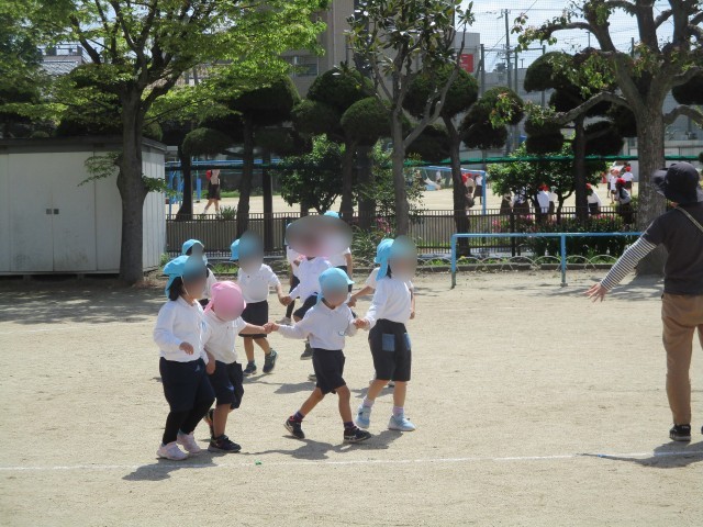 集会では「うさぎさんのダンス」をしています。みんな曲に合わせてぴょんぴょんと跳ねて楽しんでいます。