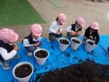 自分で植木鉢に土を入れて、チューリップの球根を植えました。反対に植えると芽が出な...