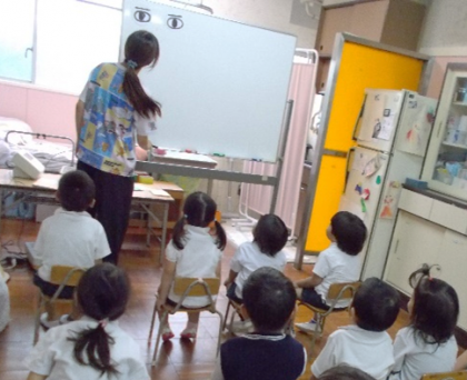 10月の保健指導 3歳児(あか組)・4歳児(さくら組)