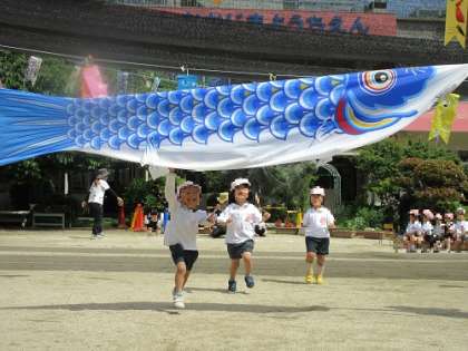 鯉のぼりに負けず、元気に過ごし、楽しく遊べますように・・・と、子どもの日の集いを楽しみました。